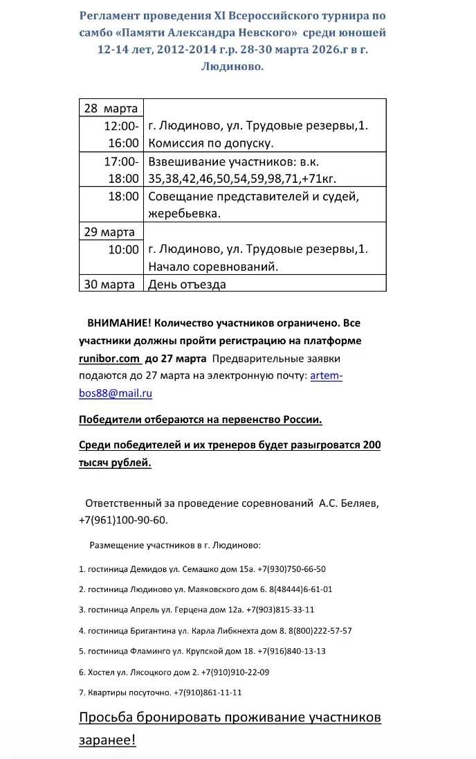 Соревнования и мероприятия за 2026 год