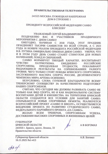Поздравление с Днём самбо от Губернатора Брянской области
