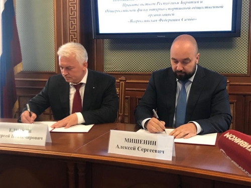 Одним из первых и значимых мероприятий визита стало подписание Соглашения о сотрудничестве между Правительством Республики Бурятия и Общероссийской физкультурно-спортивной общественной организацией «Всероссийская Федерация самбо». Документ был подписан и.о. Председателя Правительства Республики Бурятия Алексеем Мишениным и Президентом Всероссийской Федерации самбо Сергеем Елисеевым в здании правительства Бурятии.