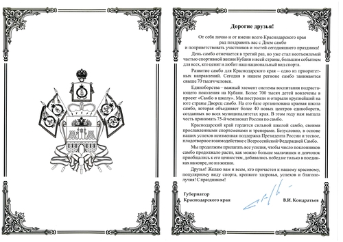 Поздравление с Днём самбо от Губернатора Краснодарского края